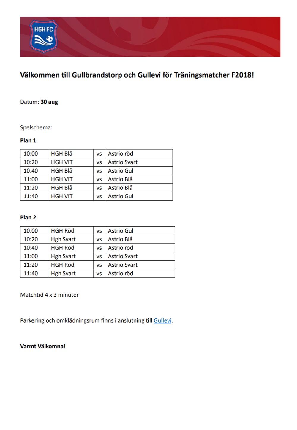 - Spelschema: Bifogas här (lagindelning kommer i morgon).