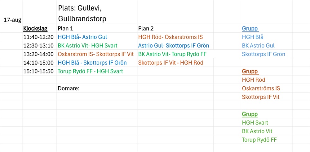 Här kommer lagindelningen till söndagens matcher i Gullbrandstorp: