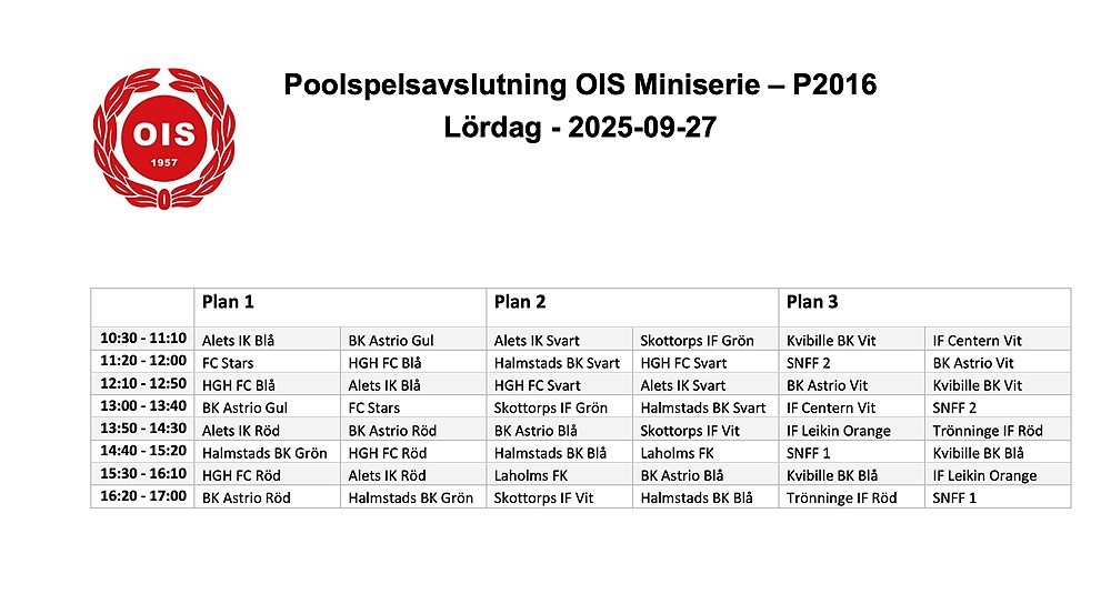 Här kommer lagen till det sista poolspelet. Samling som vanligt 30 minuter innan matchstart. Hör av er om jag missat något.