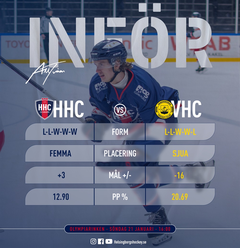 Helsingborgs HC går in i matchen med tre raka segrar, där den senaste kom i gårdagens stekheta derby mot IK Pantern. Senast Helsingborg kom in i en liknande vinst-streak slutade laget på sex raka segrar. Vänersborgs HC kommer dock göra allt för att kliva in och dra i nödbromsen på HHC’s vinsttåg då laget vid förlust kan trilla ner under PlayOff-strecket.