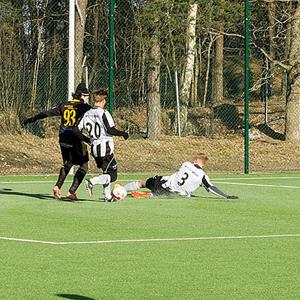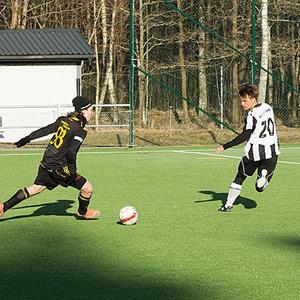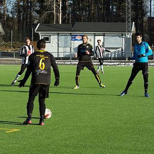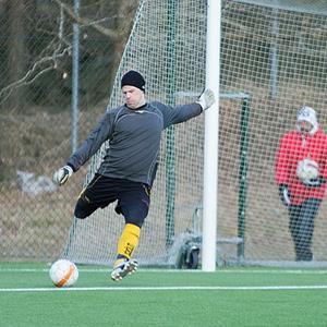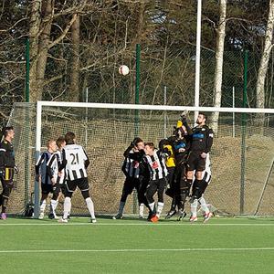 Vi kommer fornuftigt fra start, dog med en del fejl afleveringer. Det står hurtigt klart at vi møder et hold der løber meget og spille bolden hurtigt rundt. Til trods for deres hurtige spil formår vi i forsvaret at holde HAIF fra store chancer. Det eneste debutanten Tobias Wennergren i mål havde at lave i første halvleg var et par sikre indgreb på hjørnespark. I løbet af halvlegen fik vi løbende et par gode chancer, bla. efter 20 min, hvor Måns kommer fri på højrekanten med hans små hurtige fødder, og får lagt bolden godt indover til Calle, som desværre misser bolden i et forsøg på en helflugter frem for mål. Efter at have været i Thailand de første 2 måneder af 2013, er Henke ved at være tilbage i form og komme op i tempo. Efter 32 min viser Henke at han ikke har tabt sin figther vilje i vinterpausen, og trækker et gult kort med en velkendt hård tackling fra hans side. Et gult kort til samlingen. Velkommen tilbage Henke:-) Ikke mange minutter efter dette er Måns på spil igen, men denne gang på venstre kanten. Han trækker hurtigt forbi 2-3 HAIF''er og kommer ind i feltet, og får afsluttet. Men manglede desværre det sidste for at bringe os på 1-0.. første halvleg ender uden scoring til nogen af holdene. 0-0. Vi snakker i halvlegen om at vi skal have samlet holdet mere omkring midt og angreb. Vi har smidt mange bolde op på Calle, men vi har som hold svært ved at nå med op. Vi bestemmer at forsøge at komme mere kompakte frem på banen, og være først på bolden. Vi mangler de sidste 10% frem ad banen, men står stærkt deffensivt.
