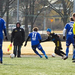 Andra halvlek startar vi betydligt bättre än första. Vi löper mer, vill mer och vi får till ett något bättre anfallsspel (som under första var nästan obefintligt). Kommer inte riktigt ihåg hur det gick till men Calle kvitterar iallafall till 1-1 ganska tidigt i andra halvlek. I andra är spelet mer jämnt mellan lagen, men vårt passningsspel är fortfarande allt för dåligt och vi slår bort många passningar. Inställningen och viljan är bättre och vi höjer oss ett snäpp ifrån första halvlek. Vi skapar några hyfsat farliga fasta situationer och hittar lite fint rull stundtals. Lane fortsätter att försöka rulla boll och gör det fortsatt bra även i andra. Defensivt är vi också bättre i andra och vi jobbar lite mer för varann.