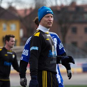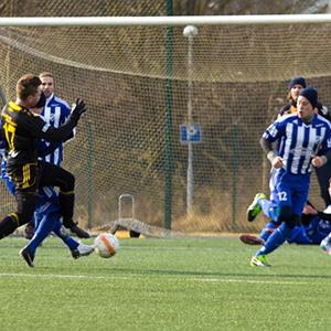 Tony i mål gjorde flera fina ingripanden och var en stor anledningen till att vi fortfarande var med i matchen. Efter en mycket krampartad inledning ifrån HIS gör vi ett antal positionsbyten på banan för att ruska om lite. Wennergren kommer in på topp tillsammans med Calle, Kenta faller ut på vänsterkanten och Back och jag kommer in på det centrala mittfältet. Tony utgår. Sista kvarten i första är något bättre än inledningen av oss och vi kommer också fram till ett par halvchanser. Det farligaste vi skapade i första halvlek var efter ca en halvtimmes spel, ett inlägg från vänsterkanten in i bortre ytan där en framrusande Jack är ytterst nära att kvittera med en fin språngnick. Målvakten i Lane gör en fin räddning och med god hjälp av ribban går bollen ut till en hörna. Egentligen finns det inte så mycket positivt att ta med sig av den första halvleken, spelet stämde helt enkelt inte alls under de första 45 min. Tony gjorde det bra i mål och positivt att vi börjar komma igång något lite bättre sista kvarten.