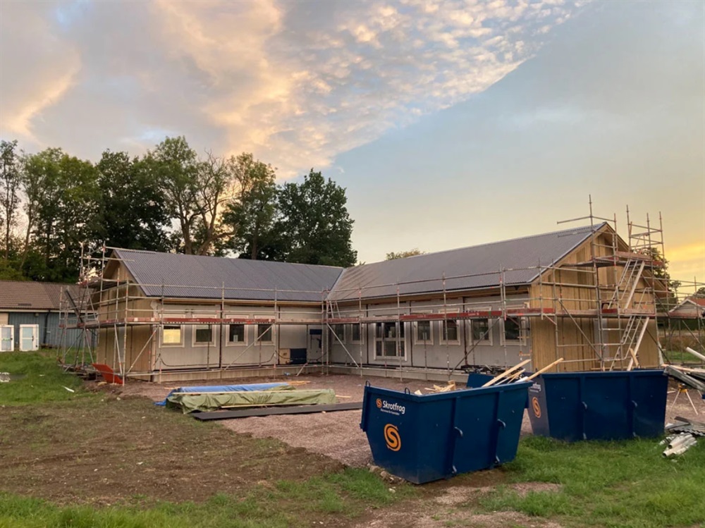 Föreningshuset baseras på kontorsmoduler som ett lokalt företag www.okg.se har sponsrat med. Storleken på byggnaden blir 279 m²!