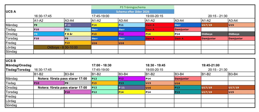 Från v9 till v16 har vi nedan träningstider på UCS.