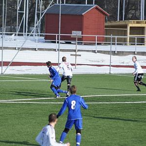 Vi startade skapligt och i den första halvleken sätter vi vårt försvarsspel någorlunda bra, och vi skapar även en del chanser. Motala spelar ett snabbt tekniskt spel där de försöker sätta ut bollar bakom vår backlinje, men våra ytterbackar för dagen (Hampus och Klang) sköter det relativt enkelt och med sin snabbhet löser de även de fåtal situationer där bollen faktiskt dimper ned bakom dem.