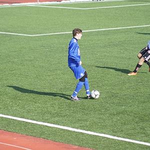 Det märks att vi är aningen större och tyngre, framförallt i båda straffområdena, och det är oftast väldigt farligt när vi får fasta situationer. Det är också på en sådan som 1-0 kommer 27 minuter in i matchen när Hampus lyfter in en frispark från mittplan i straffområdet och Mattsson mosar in den bakom en chanslös målvakt. Halvleken fortsätter i samma stil, och det märks att några av Motala spelarna inte riktigt är vana vid den fysiska nivån som de ställs mot. De ropar ofta efter frispark när duellerna är klockrena, och istället dyker det upp någon eftersläng från frustrerade Motala-spelare när de inte får med sig domsluten som de tycker att de ska ha. En sådan smäll är riktigt ful, och Tedda blir liggande på mittplan med en sprucken läpp efter att fått en armbåge i ansiktet en bra bit efter att han spelat ifrån sig bollen. Tyvärr missar den ensamma domaren situationen (då han helt riktigt följer bollen istället), men med linjemän på banan så kan spelaren räkna med att bli avstängd en hel radda matcher om han fortsätter dela ut sådana fula smällar.