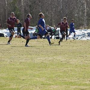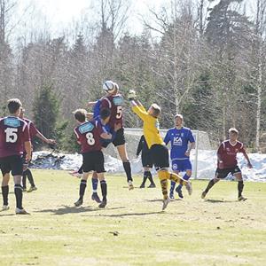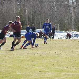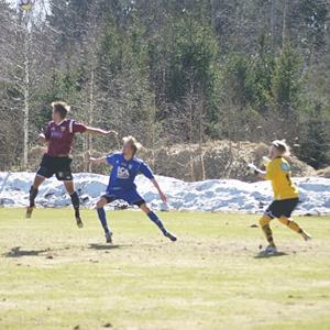 Efter ett mål i den 90:e minuten av Danne Sundström slutade premiärmatchen i div 4 västra mot BK Ljungsbro med en 3-2 seger för Hjulsbro IK. Det började annars inget vidare när Ljungsbro satte en hög och tuff press på Hjulsbros backlinje i uppspelsfasen och gång på gång fick utdelning mycket tack vare den studsiga planen. Hjulsbros backlinje försökte ofta rulla sig ur situationerna, men den något svårspelade planen ställde till det och det slutade ofta med ett brutet uppspel eller en tjongboll till absolut ingen när stressen tog överhand.