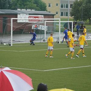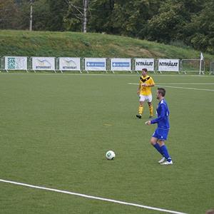 Anstormningen uteblev dock, och även om Kisa skapade några halvchanser så var det helt klart så att hemmalaget kändes starkare och skapade vassare chanser hela den andra halvleken igenom. Redan 12 minuter in i den andra halvleken sprang sig Oskar Brissle igenom efter en fin passning av Robin Mattsson och placerade retfullt enkelt in en snyggt avvägd lobb över den utrusande Kisa-målvakten som bara kunde konstatera att 2-0 var ett faktum. Nu var det många gulklädda bortaspelare som började hänga med huvudet, och Hjulsbro skapade flera fina chanser till 3-0, men istället blev det som så många gånger tidigare när ett lag dominerar utan att få utdelning; det blir ett mål i baken istället. Helt ologiskt reducerar Kisa till 1-2 i den 70:e matchminuten genom duktige Hilding Djerf, reduceringen kommer på ett snyggt distansskott när Hjulsbro tillfälligt spelar med en man mindre på banan då högerbacken Hampus Axelsson ligger skadad utanför planen.