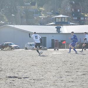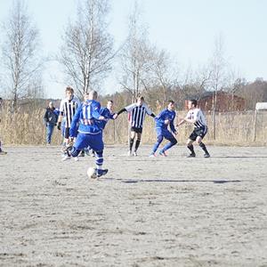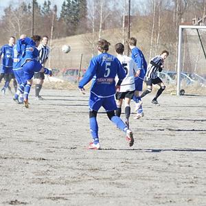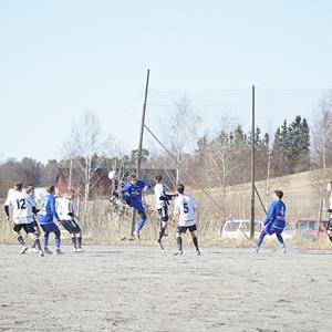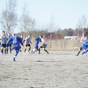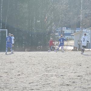 Inledningen av matchen började i ett högt tempo, där de blåa krigade hårdast. Redan i 5e minuten kom första hörnan, och i efterföljande situation nöp Bjärne till. Skottet fastnade dock i högen med spelare, men mr Olsson fick chansen o tryckte till i nästa läge. Bra start och 0-1 på tavlan.