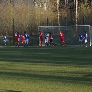 Med ca 15 minuter kvar får så LiU sin chans, en central lyftning passerar mellan Arvid och Nicke och en LiU-spelare rinner igenom och får ett friläge mot Henke som dock snyggt räddar och ställningen 1-0 står sig.
