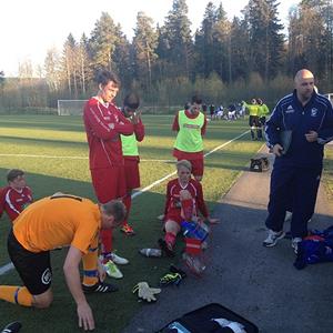 Vi fortsätter att nöta på med mycket spel ut mot våra yttrar och hittar gång på gång ytor såväl bakom som framför och utanför LiUs backlinje. På innermitten har Tedda, Joel och Pelle en ganska behaglig första halvlek där motståndarna förvisso är duktiga, men med bara 2 spelare mot våra för dagen 3 riktigt hungriga grabbar så blir de en munsbit!