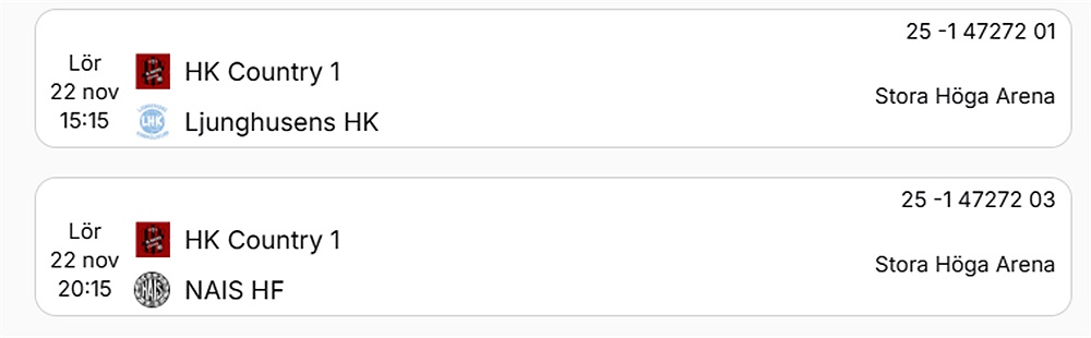 Första matchstart är kl. 15:15 mot Ljunghusens HK.