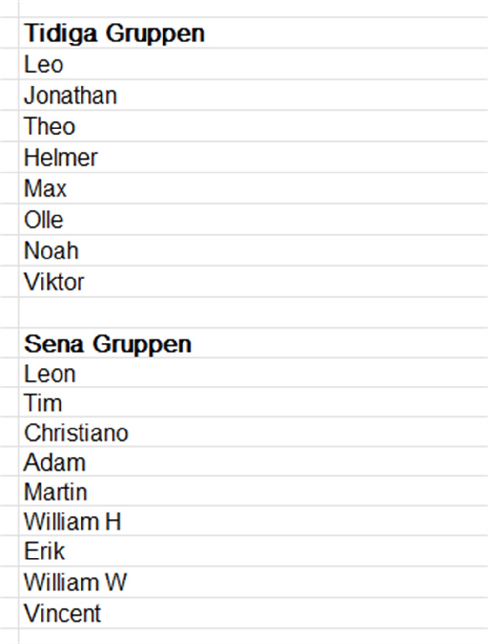 Tidiga gruppen är 15:45-17:30. Sena Gruppen 17:30-19:15.