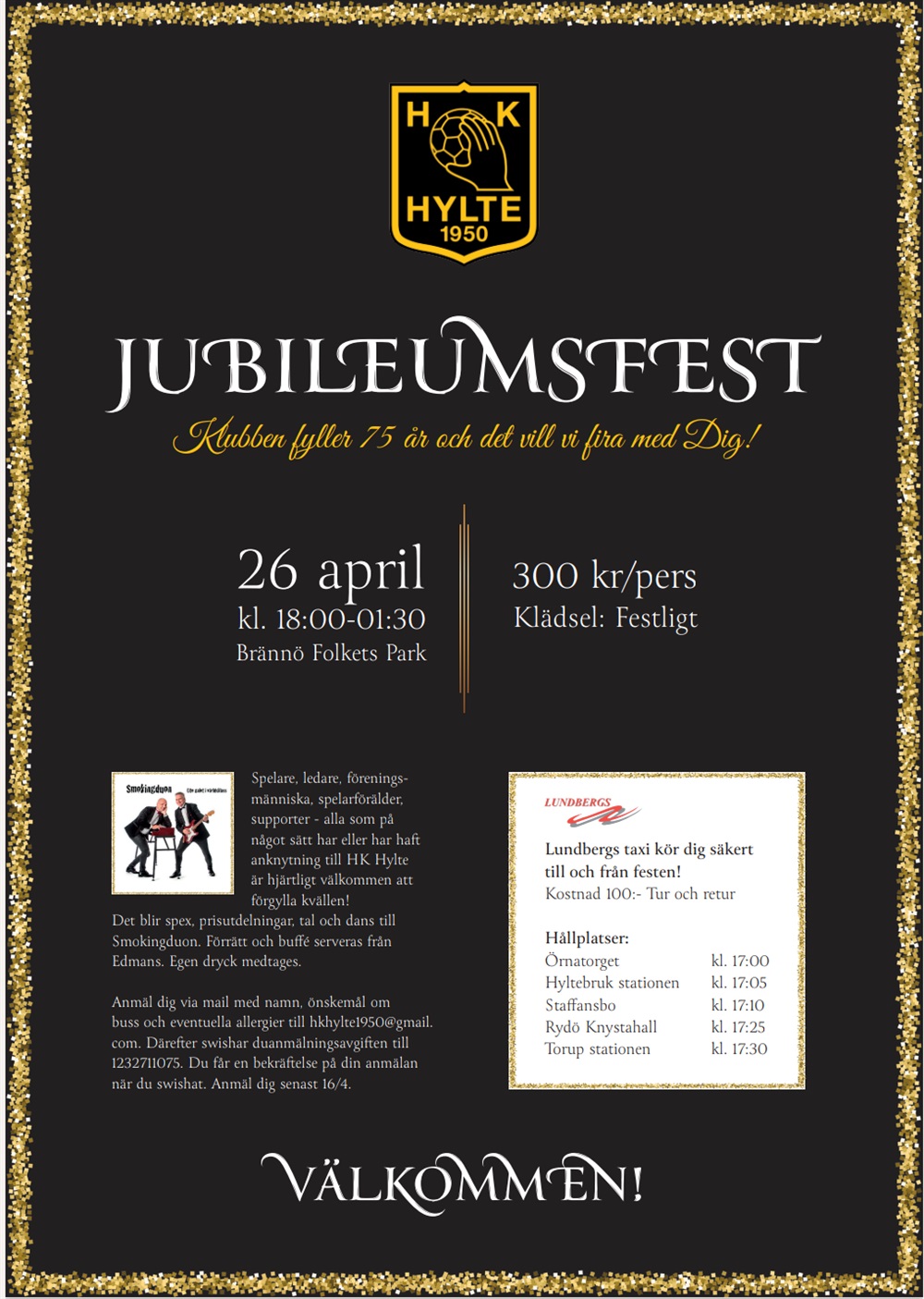 Boka in den 26/4 i kalendern, det blir happenings i Örnahallen hela dagen och på kvällen anordnar vi 75 års fest! Du hänger väl med och firar vår kära klubb?! Anmäl dig redan nu! 💛🖤