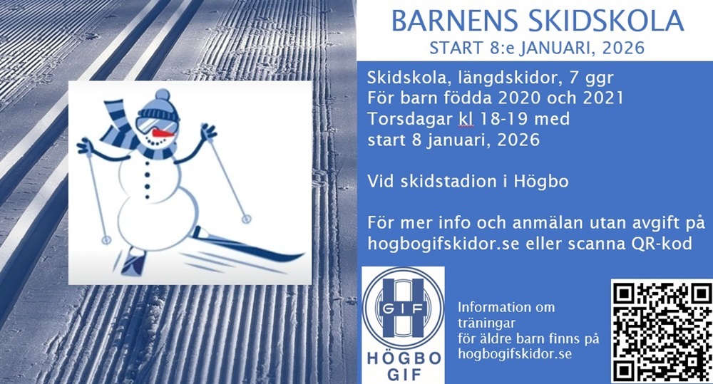 Skidskolan startar torsdagen den 8/1 kl 18-19 vid skidstadion i Högbo, samling utanför Högbo GIFs klubbstuga.