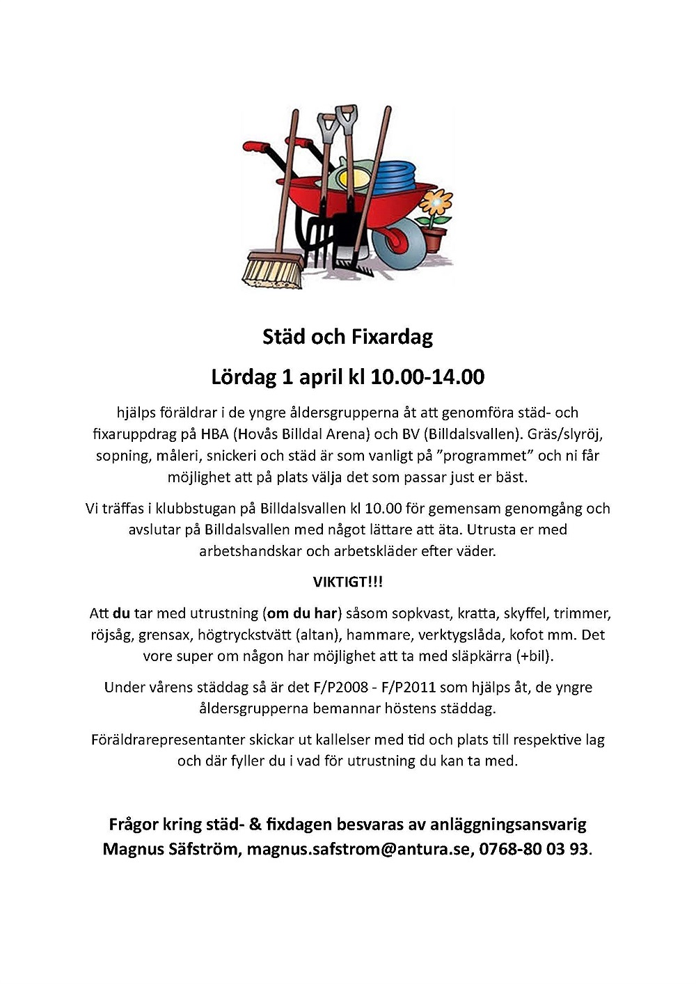 Om ni får förhinder har ni ansvaret att hitta en ersättare. Lycka till på städdagen!