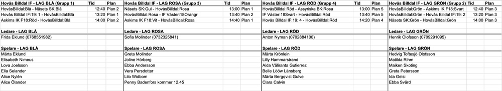 Mer info om lagen och matchtiderna finns på bifogade bilder.