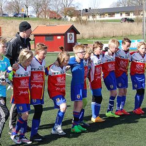 Det var ett gäng förväntansfulla killar som samlades för seriepremiär på Kobbegårdens konstgräs mot gästande Utbynäs SK. Strålande sol gav de bästa förutsättningarna för fin fotboll och humöret var på topp, men vi ledare kunde dock ana en viss premiärnervositet hos killarna. Första 10 minuterna av matchen startade med ett högt tempo där Utbynäs pressade på ordentligt. Vi hade svårt att få ordning på passningsspelet och vi fick slita ordentligt i försvaret. Pressen gav utdelning för Utbynäs som petade in 0-1 efter en uppfångad retur. I mitten av första halvlek började killarna hitta sin positioner bättre och tog tillbaka initiativet i matchen och vi avslutade första halvlek riktigt jämt. Andra halvlek startar vi med bra självförtroende och vi fortsätter att ta tag i spelet, men Utbynäs släpper inte in oss i matchen och efter två missar på mittplan gör Utbynäs både 0-2 och 0-3. Sett över hela matchen var Utbynäs det bättre laget idag, vi jobbade och slet bra i vårt försvarsspel, men hade svårt att komma fram till några avgörande målchanser. En eloge till killarna för att de trots det tuffa motståndet höll humöret uppe och peppade varandra, det bådar gott inför kommande matcher. Vi tackar trevliga Utbynäs för en bra match. /Johan