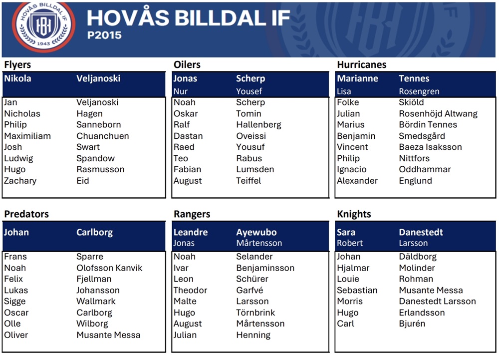 Ovan ser ni lagindelningarna för HBIF-dagen.