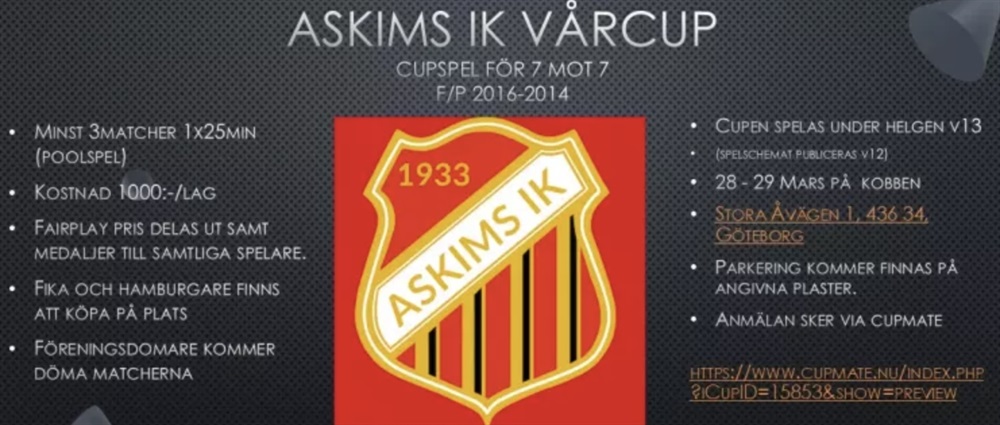 Vi planerar för att vara med i Askims IKs vårcup 2026.