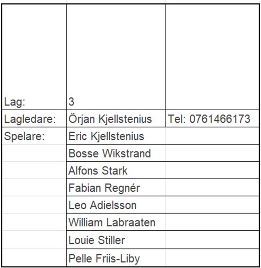 Lagledare: Örjan Kjellstenius Tel: 0761466173