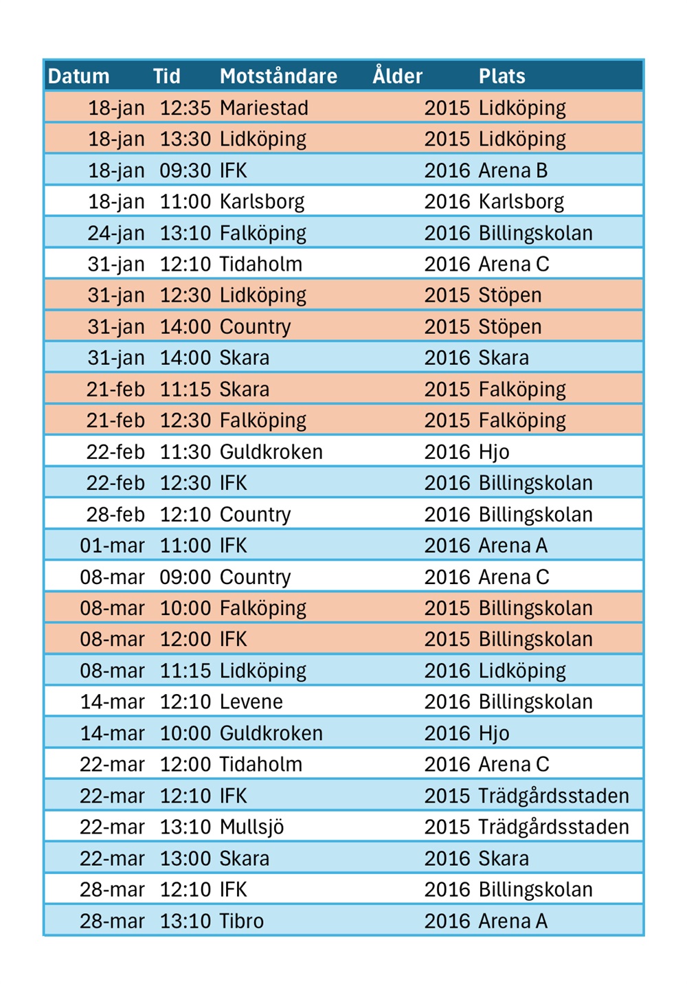 Vi har planerat för alla vårens matcher, så det kommer att ramla in en drös med kallelser till er inom kort.