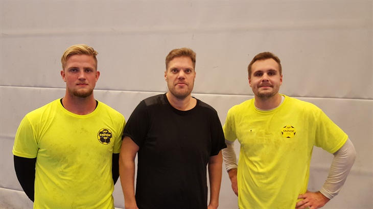 På bilden syns tränare Fredrik Ljungqvist flankerad av Ludvig Lind och Oskar Thiberg (Oskar Bengtsson saknas på bilden).