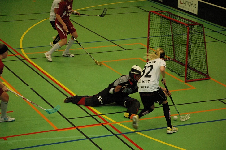 Efter 7.21 fick vi ett gyllene läge men när Malin L skulle lägga in bollen fick hon ett ordentlig slag på klubban. Solklar straff tyckte både vi och domaren, tyvärr blev det ett slag som lönade sig då straffen missades.