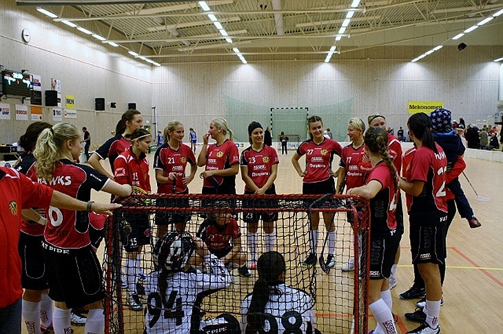 Första perioden gick alltså i Hässelbys favör vilket också skottstatistiken (6-12) visade. Arboga var inte dåliga utan skapade en hel del chanser som ”Alex” i målet fick avstyra och det gjorde hon väldigt bra. Mycket bollinnehav för oss medans Arboga spelade ett mera ”pang på rödbettan” spel. Så det gällde verkligen att tjejerna var med i ”hemspringet” på deras snabba anfall.
