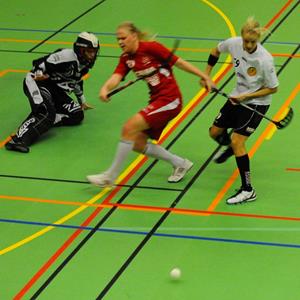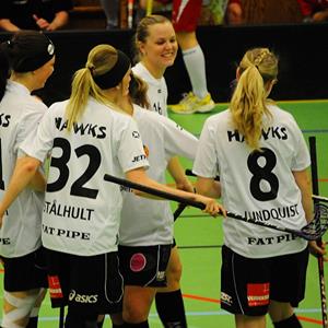 Tredje perioden och nu ska det avgöras, blir det ett försiktigt spel med tanke på att det är oavgjort? Nej båda lagen vill vinna och går för fullt framåt. Hässelby har tre ganska jämna femmor medan Telge har sitt vassaste vapen i första linan. Mari får iväg ett lurigt skott som nästan går in efter tre minuter, tre minuter senare får Fia sitta i utvisningsbåset (många på läktaren tyckte inte att det var utvisning) och Telge får spela i PP. Men vi reder ut detta utan något problem, tajt och skickligt, vi har tom bud på ett mål. Det är lika spännande idag som igår, valuta för entrépengen sa någon. Efter tio minuter stoppas Lisa bryskt, blir dragen i armen? Och stannar fullständigt upp, här skulle verkligen en tvåa vara på sin plats men domaren väljer tillsägelse istället. Spelet går fram och tillbaka, med tre minuter kvar träffar Malin S stolpen..... En minut senare får Michele göra en jätteräddning. Ett misstag kan avgöra, eller någon spelares skicklighet. Perioden slutar 0-0 men spelmässigt skulle jag vilja säga att det var Hässelbys.