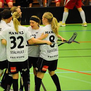 Fjärde perioden, nu blir det sudden igen, max tio minuter, efter en kort vila startar matchen igen, det är spännande, flera chanser avlöser varandra. Telge kommer i ett anfall, bollen studsar olyckligt och rullar sakta in i Hässelbys mål. Jaha så var det med det, glada Telgespelare och ledsna Hässelbyspelare. Ännu en jämn match som kunde slutat hur som helst, nu var det Telge som hade fru fortuna med sig. Matchens lirare blir i Hässelby Malin L, ett bra beslut.