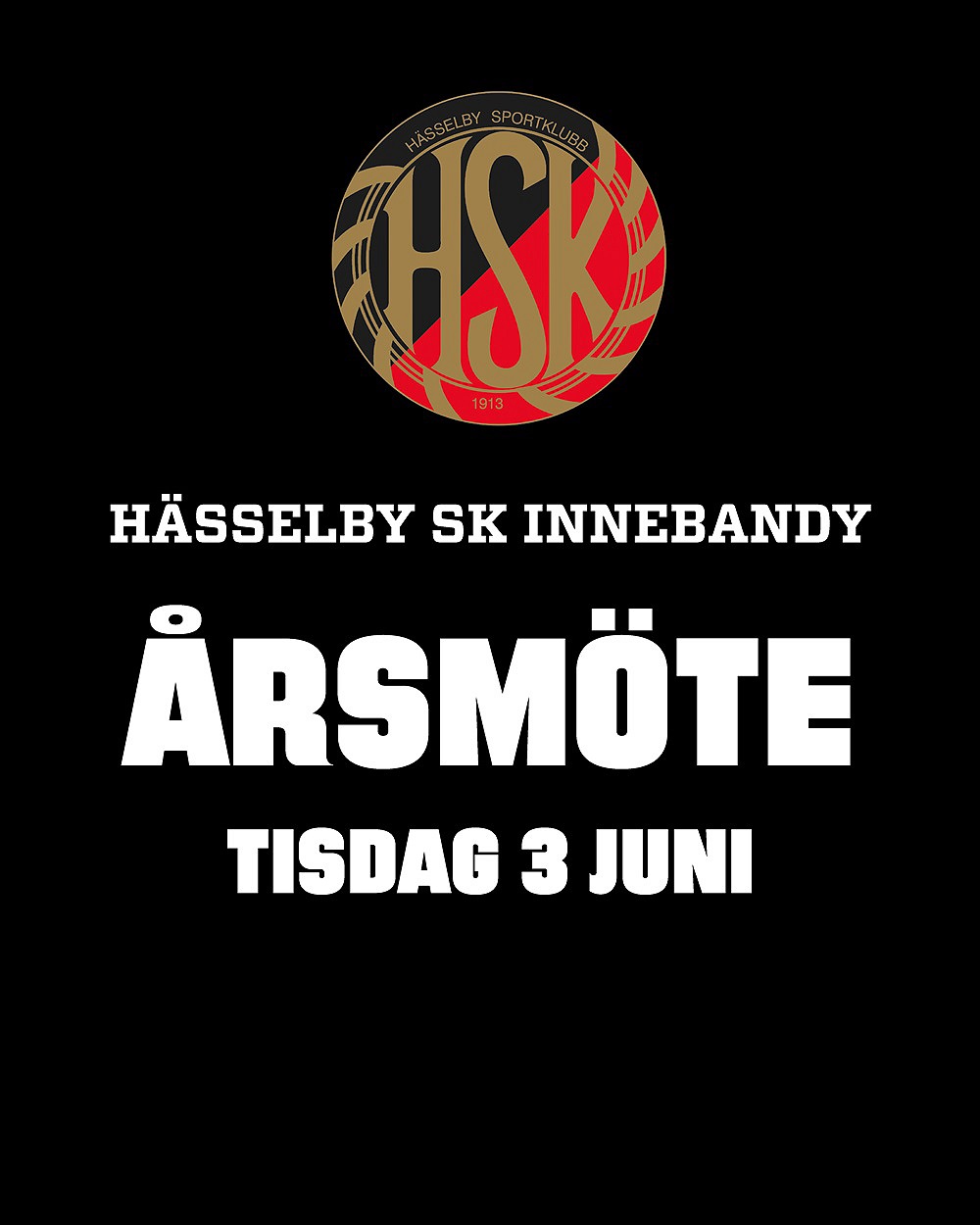 Hässelby SK Innebandy hälsar alla medlemmar välkomna till årsmöte tisdagen den 3 juni kl 19.00 i Hässelbyhallen.