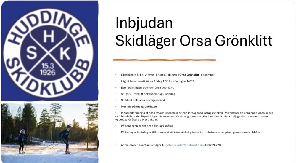 Likt tidigare år kör vi även i år ett klubbläger i Orsa Grönklitt i december.