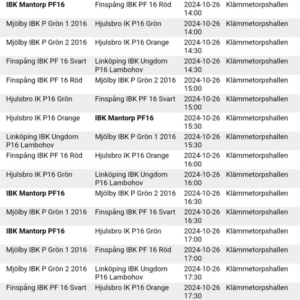 Detta är säsongens enda sammandrag i Mantorp för PF16-17, så det innebär att vi föräldrar kommer behöva hjälpas åt med kiosk och sekretariat. Jag har gjort en lista nedan över vilket barns föräldrar som har vilket pass i kiosk och sekretariat.