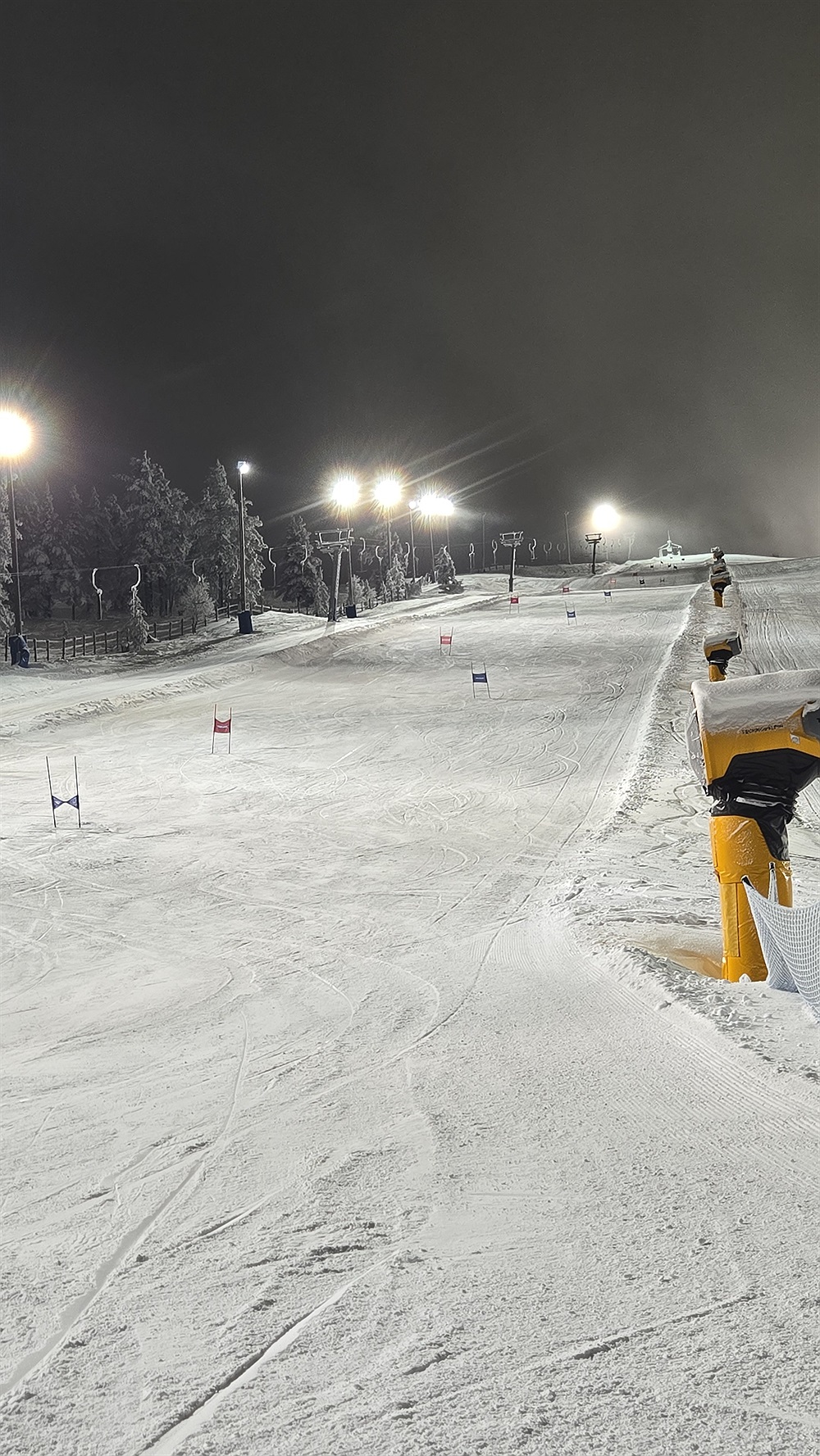 På tisdagar kör vi GS (storslalom) och torsdagar kör vi SL(slalom). Vi anpassar träningarna utifrån vilka som kommer.