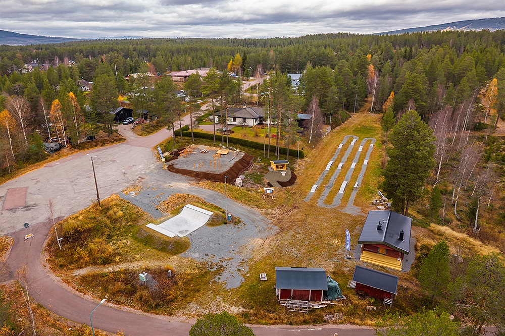 Elljusspårets aktivitetsområde stod klart hösten 2025 och vi är så stolta och glada över att kunna erbjuda bybor och turister utegym, skatebordramp, cykelhinder och en mysig slogbod med grillplats.