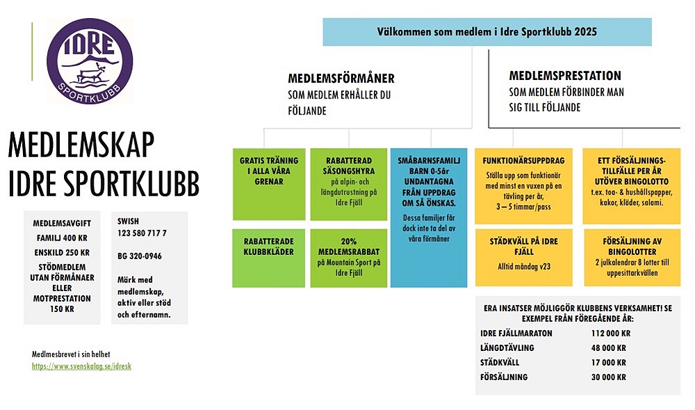 Som AKTIV medlem har du tillgång till alla träningar, aktiviteter och förmåner i Idre SK.