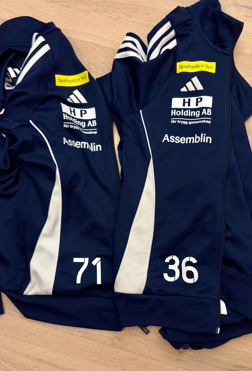 efter träningen igår hittades de här två träningsoverallsjackorna på läktaren. Är det någon som känner att de saknar en jacka så hör av er till mig.