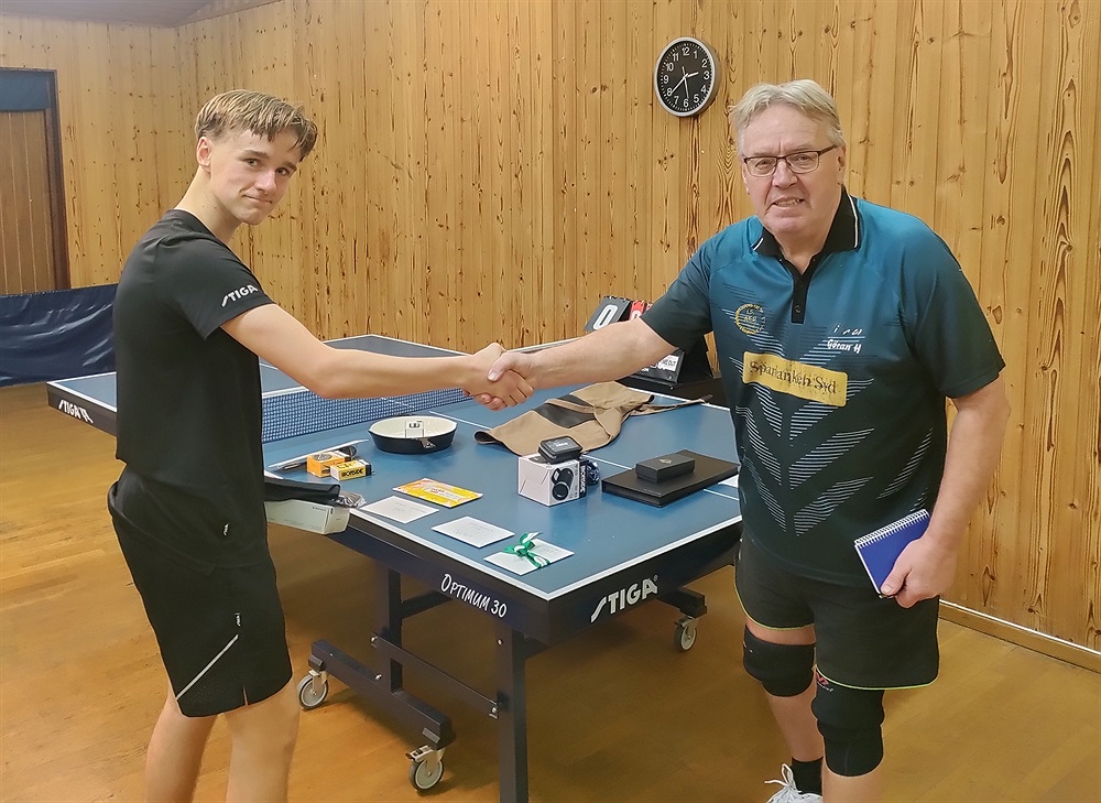 Äldst mot yngst i finalen; Christer med -1 mot Anton med -2. Jämna set där Anton var den något starkare och vann de viktiga bollarna. Finalsiffror: 11-8, 11-9, 11-8.