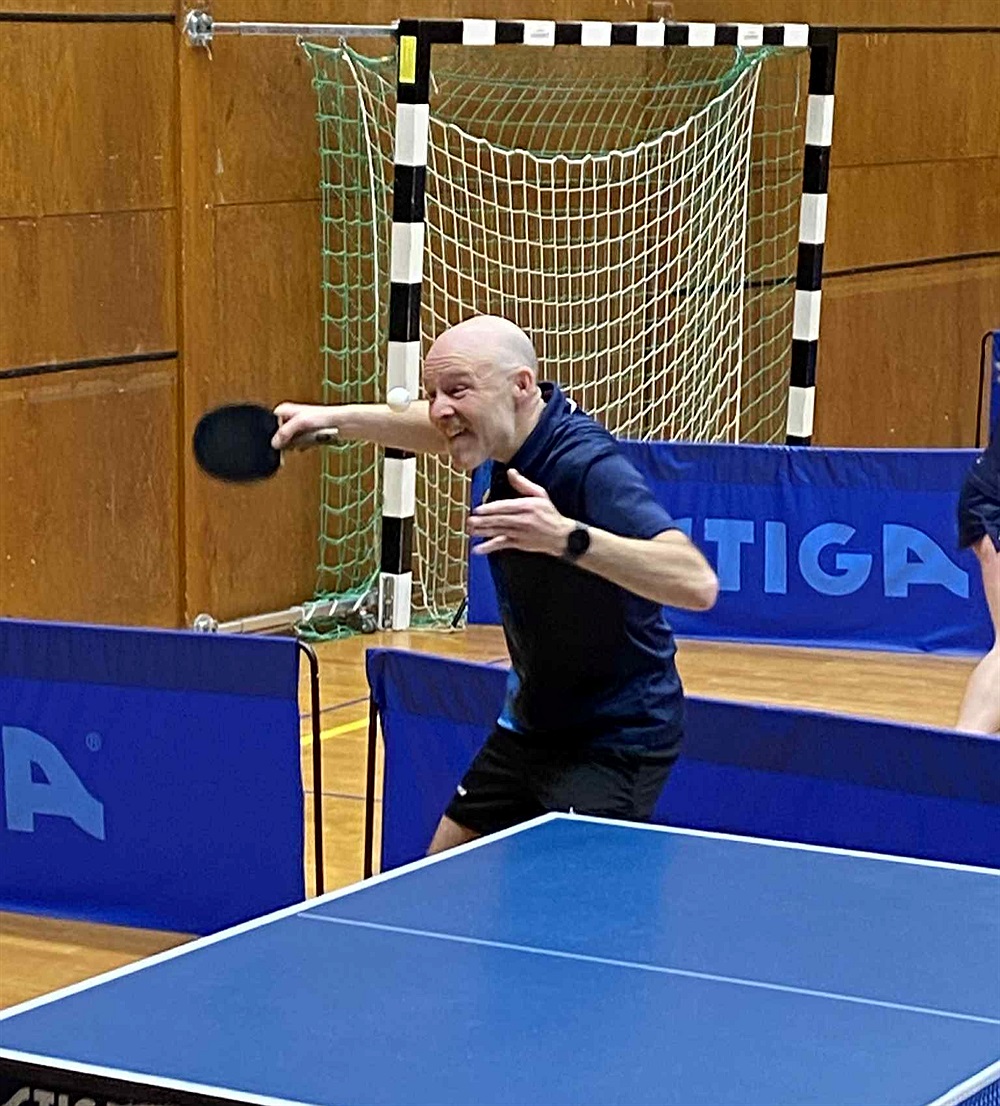 IF Ales spelande sekreterare hade även sitt rack med sig och lottningen i klassen max 999 innebar ett möte med träningskompisen i Damsnäs, Peter Lantz, för undertecknad. Jag var piskad att vinna den matchen för att gå vidare till slutspel och lyckades hålla nerverna och spelet i styr. Så känslan var bra inför sextondelen mot Alvin Dzonlagiz, BTK Arsenal Nybro. Det blev en jämn och svettig historia som krävde fem set där jag var klok nog att ta en timeout vid ledning 9-7 och egen serve för att få ner pulsen. Det slog väl ut och båda servarna gav utdelning!