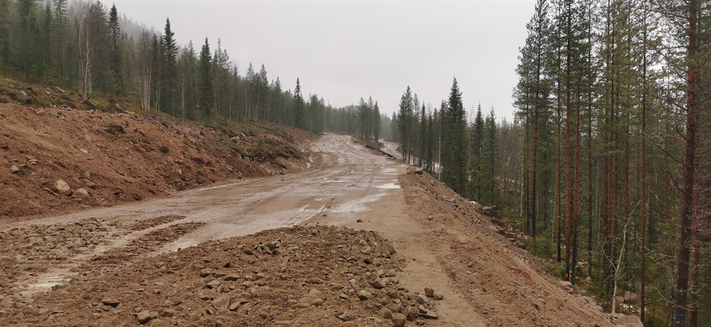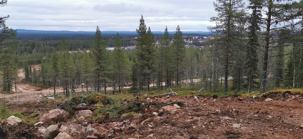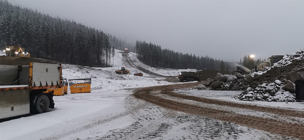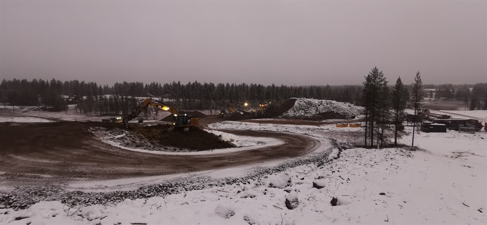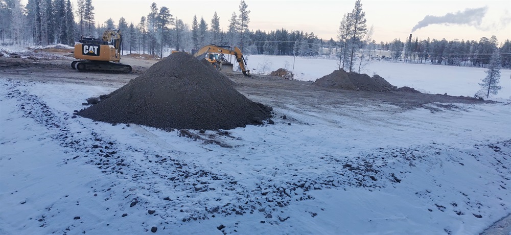 Det går helt otroligt snabbt med vårt nya spår och till det räknas även elen som ska dras till elljuset som är på spåret. På bilden ser vi utförsbacken som är längst bort på spåret, lägg märke till att vi följer alla de riktlinjer som ska följas för ett skidspår idag. I utförsbackarna har vi placerat belysningen i innerkurvorna så att man inte ska åka på stolpen om man skulle ha oturen att åka ur när kurvan svänger. Spåret ska bli ett av de bästa spåren man kan åka skidor på idag och vi sätter ribban på högsta nivå när det gäller allt.