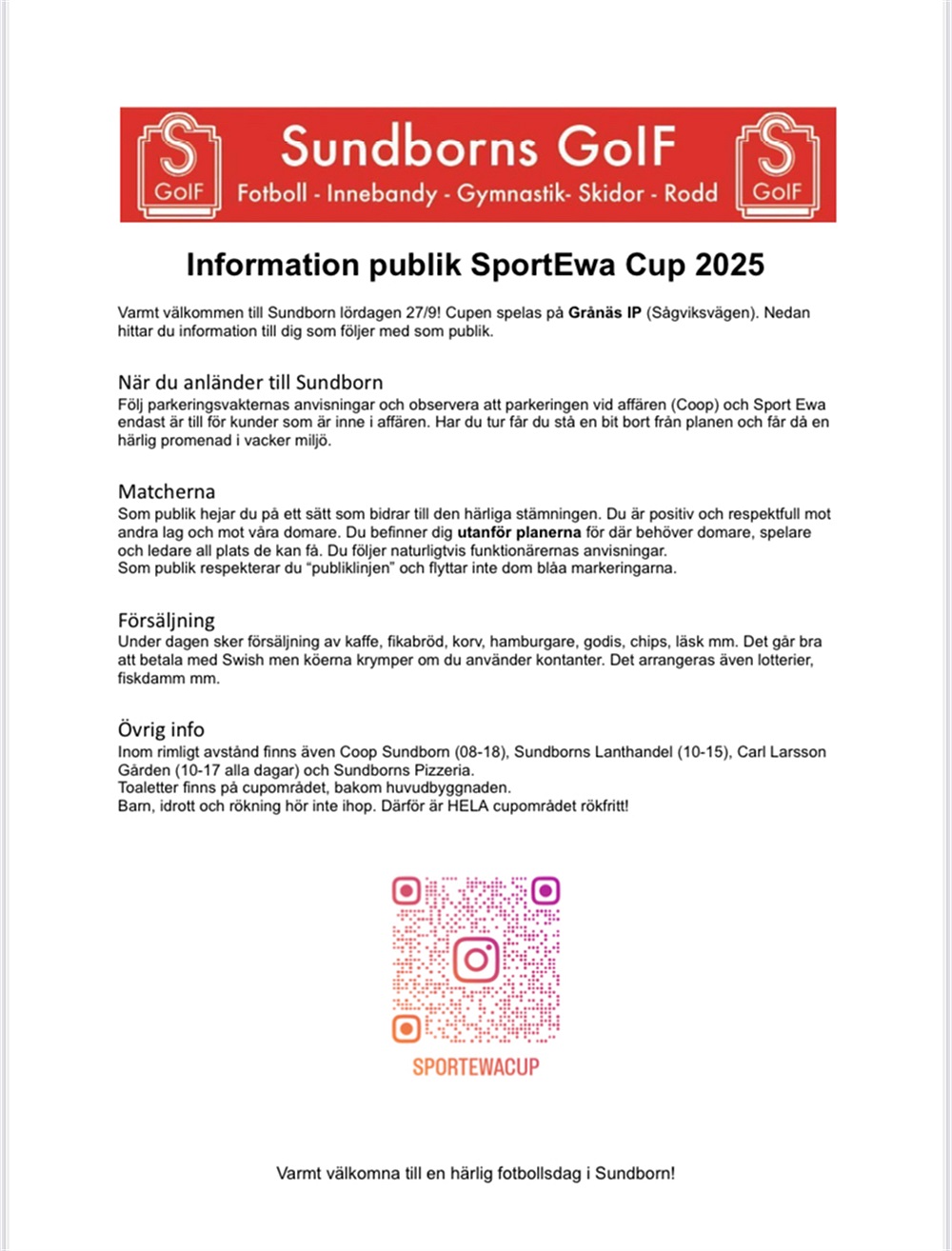 Sportringen är där 10-15 om ni vill beställa klubbkläder. Kommer att vara extrapris på vår mysiga hoodie denna dag, perfekt plagg till hösten! Även lite giveaways.