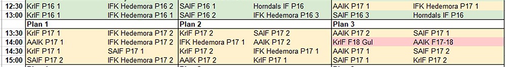 Vi har gemensam samling trots att ett lag spelar tidigare. Men då hejar vi på varandra! Vi meddelar lagindelningen på plats.