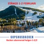 - Jul, nyår och trettonhelgen (25 dec - 2 jan) Gopshusbacken är stängd tillsvidare pga snöbrist.