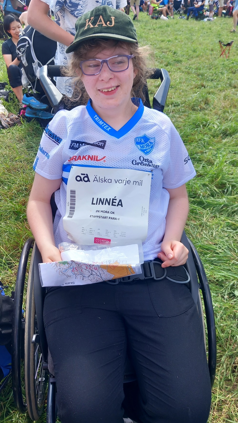 På O-Ringen erbjuds flera olika klasser, då det är en sport för alla och ska vara inkluderande. Därför finns det sedan några år klasser även för para-deltagare. Så på den tredje etappen gjorde Linnéa Elmgren debut i O-Ringen. Tillsammans med mamma så påskjutare tog hon sig runt en ganska klurig bana och fick uppleva känslan av att gå i mål på världens största orienteringstävling.