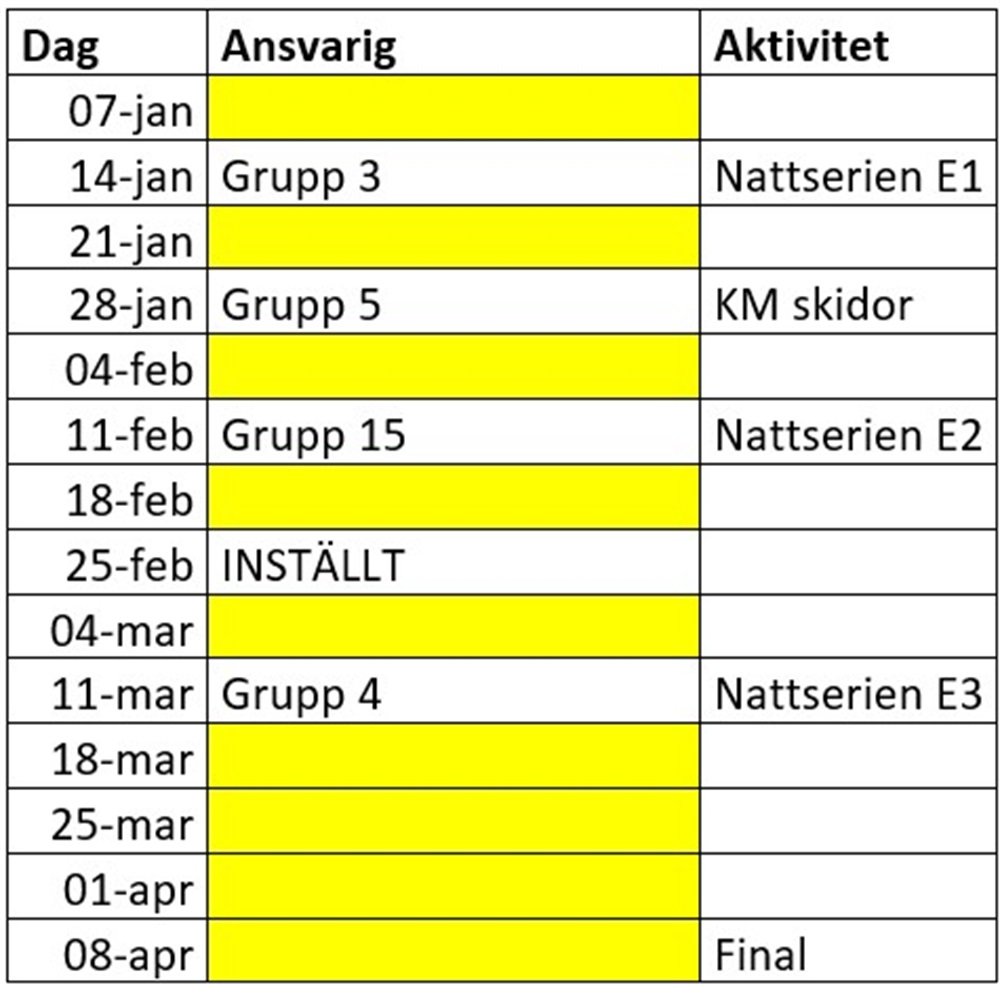 Arbetsgrupperna 3, 4, 5 och 15 har tilldelats kvällar men sedan är det vakant. Först in och skriva upp sig har störst chans att få en ”bra” kväll.