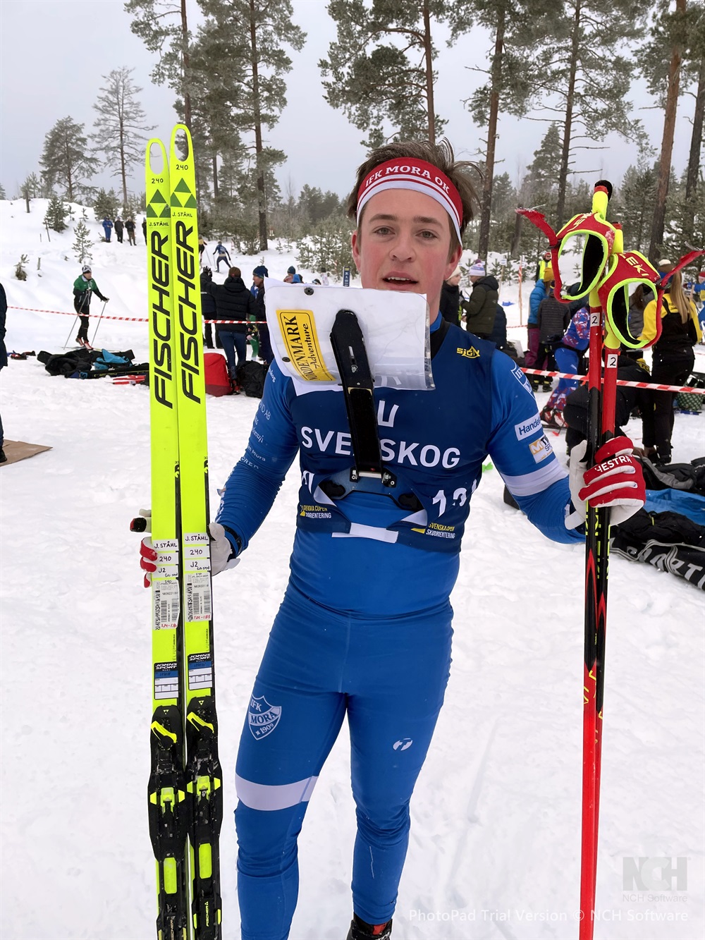När han spurtade i mål och hamnade just på ryggen för att pusta ut tog han ledningen med 29 sekunder. Men sedan stormade klubbkompisen Gustav Johnsson i mål som ny tvåa 16 sekunder efter. Nu dröjde det inte lång tid förrän Gustav Nordström, Umeå, spurtade i mål och spräckte Moras dubbelledning.