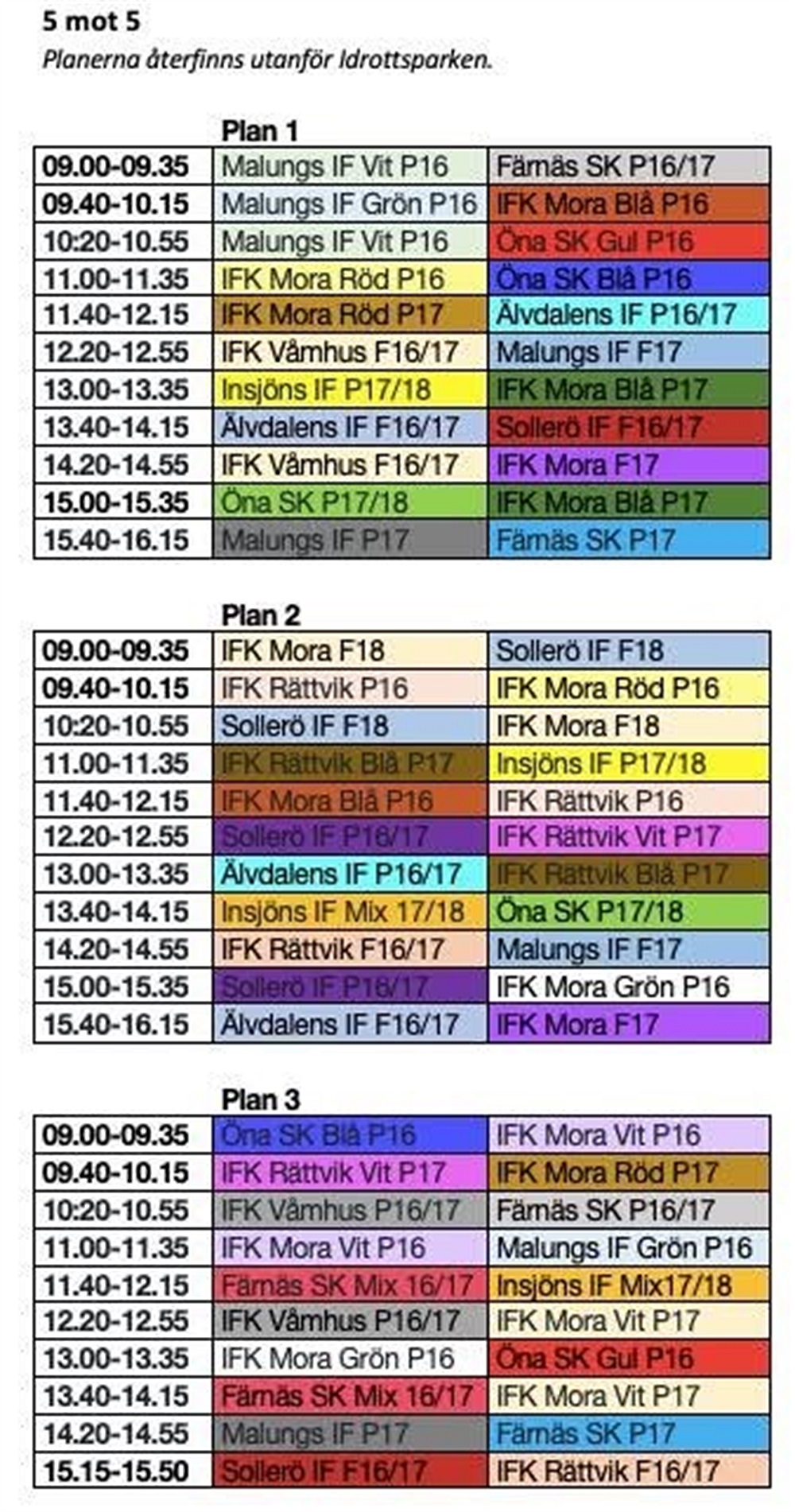 PLAN 3: 11:00-11:35 IFK MORA VIT P16 - MALUNGS IF GRÖN P16 (MARTIN)