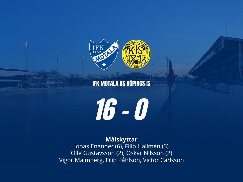 Imponerande bredd och spets Det är imponerande att se hur IFK Motala visar upp en så tydlig bredd i truppen, vilket gör att man kan vinna komfortabelt även vid frånvaro av nyckelspelare. Samtidigt besitter laget den nödvändiga spetsen, vilket inte minst bevisades av lagkaptenen Enander, som var dominant och stod för hela tre mål denna afton.